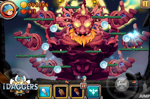 iDaggers飞刀中文免费版是一款街机风格的横版过关类游戏,游戏中玩家扮演的小个子为了拯救被好色国王抢走的青梅竹马而展开了一场英雄救美的大冒险。试试看你的飞刀能练到啥地步吧