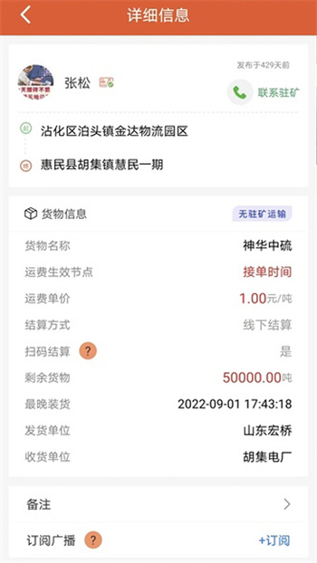 2、货源信息的详解,司机用户能够查看详细的货源信息,考虑是否接单