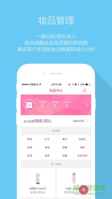 妆品过期可能也是你的一大钱包杀手哦!妆品管理功能,及时提醒快要过期产品,还有每月消费统计,化妆品从此用的放心~妆品库包含妆品功效和成分,让你轻松找到最适合自己的化妆品。