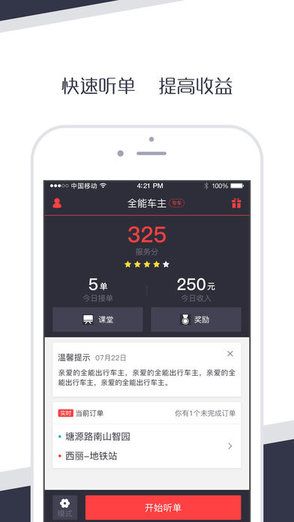 方便智能:智能化订单推送,全程语音播放,准确播报乘客上下车地点,轻松接驾。