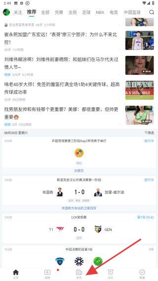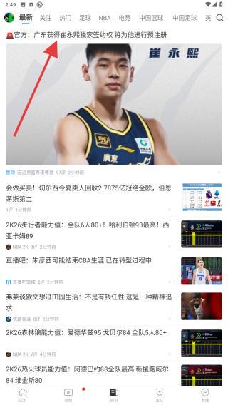 1、打开直播吧App,点击底部导航栏中间的资讯图标即可跳转至该页面。