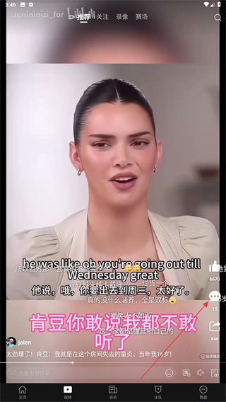 2、进入视频播放的页面内,点击右侧评论的功能图标。