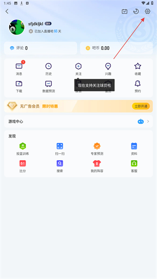 1、打开直播吧应用,进入首页点击左上方的头像图标。
