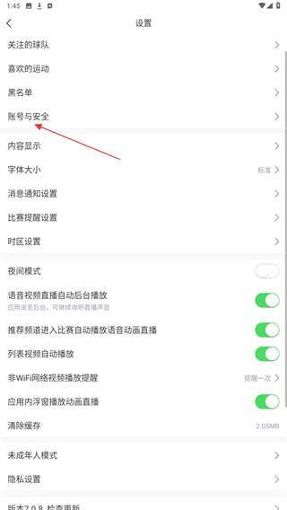 3、在设置的页面内,点击下方账号与安全的按钮。