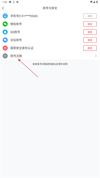 4、在账号与安全的页面内,点击账号注销的按钮即可。