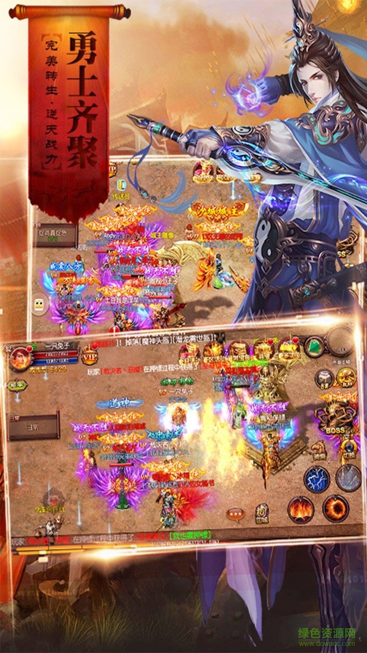百万行会,千万兄弟,再度集结,跨服拿沙!经典沙巴克、行会战一触即发,千人同屏、万人震撼攻城,重回激情飞扬的年代;百服精英、魔族王者共聚上古战场,创新跨服结盟系统,500V500自由竞技,兄弟行会携手挑战巅峰!