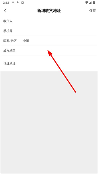 4、在新增收货地址页面,填写详细信息后,点击保存即可添加收货地址。