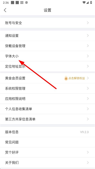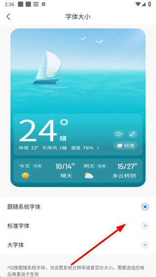 4、在页面可选择字体大小,点击对应的选项即可完成字体大小的更改。