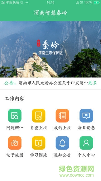 渭南智慧秦岭app是专为渭南生态保护区环保而设计的一款办公服务性软件,利用这款软件可以对保护区内的环境调查进行记录,将自己发现的有关稳定还可以提起申报,让秦岭生态环境得到更好的保护,还有大型电子地图,让你更加了解秦岭的地质结构等,需要的朋友欢迎来绿色资源网下载使用哦!