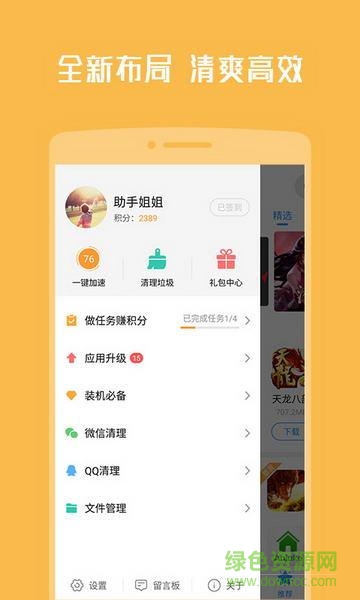 您的随身软件管家!提供数十万安卓软件和游戏供您下载,每天都推荐最火热的应用和热门游戏,让您轻松变身玩机达人。一键轻松下软件,让您时刻走在潮流前沿。免费领取游戏礼包,让您在游戏中愈战愈勇!2345王牌手机助手,您必备的andriod手机软件管家。