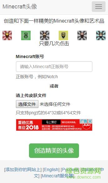 软件介绍 软件标签: minecraft头像生成器 我的世界手游 minecraft头像生成器是一款可以快速帮你生成minecraft头像的手机应用,只需要简单点击几下就可以生成你喜欢的像素头像哦,喜欢我的世界的朋友赶紧来绿色资源网下载吧minecraft头像制作器使用说明输入minecraft账号上传皮肤文件生成头像我的世界游戏介绍Minecraft是一款沙盒游戏,整个游戏没有剧情,玩家在游戏中自由建设和破坏,透过像积木一样来对元素进行组合与拼凑,轻而易举的就能制作出小木屋、城堡甚至城市,玩家可以通过自己创造的作品来体验上帝一般的感觉。在这款游戏里,不仅可以单人娱乐,还可以多人联机,玩家也可以安装一些模组来增加游戏趣味性。 软件截图 上一张下一张(1 / 1) 安装详细截图 猜你喜欢 头像生成器 头像制作软件 头像生成器 头像生成器是非常实用的图片处理美化工具,可以帮助广大用户们设计独一无二的头像图片,打造个性自我。今天小编就为大家带来市面上非常好用的一些头像生成器,欢迎大家下载使用。 查看更多>> edg头像生成器 5.54M/中文/10.0/v1.0 安卓版下载 微信国旗头像生成器 6.77M/中文/10.0/v1.0 安卓版下载 漫画头像制作app 50.44MB/中文/10.0/v1.0.9最新版下载 头像制作神器带字app 19.71M/中文/10.0/v1.0.2 安卓版下载 灰色头像生成器 3.30M/中文/10.0/v1.0 安卓版下载 q版头像制作软件生成器 17.50M/中文/10.0/v1.0.7 安卓版下载 头像制作软件 头像制作软件可以生成你自己心仪的头像,可以随意给头像添加你想加的东西,在头像上可以尽情的展现自己的个性,将自己的头像变得独一无二,成为最独特的那个人。 查看更多>> 动漫头像制作器软件 41.40M/中文/10.0/v1.0.3 安卓免费版下载 头像制作免费软件 55.28MB/中文/10.0/v5.9.32 最新版下载 情侣头像制作大全软件 68.79M/中文/10.0/v1.1 安卓版下载 动漫头像制作大师[捂脸] 54.68MB/中文/10.0/v1.2.5安卓版下载 头像制作大师免费版 22.82MB/中文/10.0/v2.7.8 安卓版下载 卡通头像制作app 16.06M/中文/3.3/v1.2.6 安卓版下载 其他版本下载 标题 大小 更新日期 下载 下载地址 Android版 minecraft头像制作器 v2.0 安卓版 MD5:310423c4aec894fa84ad4f67173975d1 点击报错 软件无法下载或下载后无法使用,请点击报错,谢谢! 关闭报错反馈 请描述您所遇到的错误,我们将尽快予以修正,谢谢! *必填项,请输入内容 本类最新 抠图神器软件 v23.11.22 安卓版 小米快传国际版最新版shareme apk v3.47.03安卓版 mi drop app(文件传输备份) v3.47.03安卓版 傲软扫描手机版 v2.0.9 安卓版 shareme app v3.47.03安卓最新版 美策视频编辑 v6.3.6 安卓版 用户评论 热门评论 最新评论 发表评论 查看所有评论(0) 昵称: 请不要评论无意义或脏话,我们所有评论会有人工审核. 字数: 0/500 (您的评论需要经过审核才能显示)