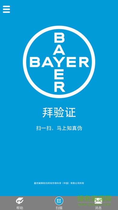 拜验证是拜耳作物科学(中国)有限公司提供的产品验证工具。用户可以使用此工具扫描拜耳作物科学(中国)有限公司生产的产品包装上的二维码以获得该产品的信息。