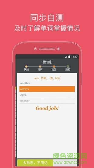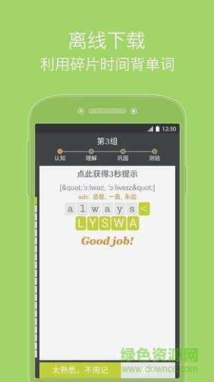 我爱背单词安卓是一款简介易使用的手机背单词软件,采用经典的分组记忆法,将单词分组记忆,更加的方便快捷,同时还能增强单词记忆!还有海量的英语考试单词,从各方面提升英语成绩!喜欢的朋友可以到绿色资源网下载体验哦!