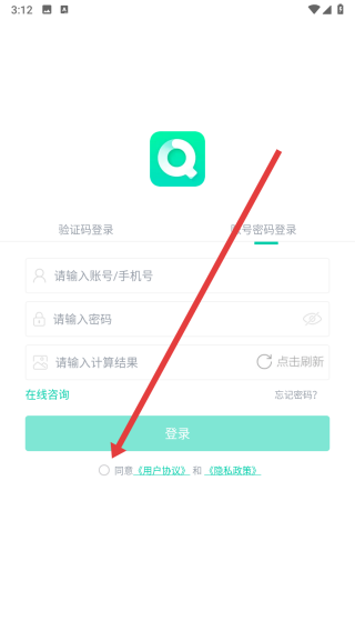 2、在进入到登录页面中,登录前需先点击勾选同意按钮后操作。
