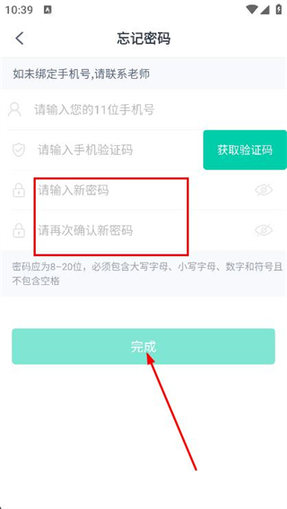 3、设置新的密码,点击下方的完成按钮即可密码设置。