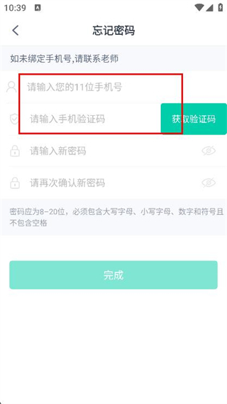 2、在忘记密码页面,输入手机号,填写收到的验证码。