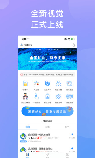 沃e能源APP源通过AI,大数据、大中台等技术实现能源供需两端数字化连接,目前平台系统即将覆盖全国92%以上的加油站、98%以上的汽车充电桩、95%以上的LNG/CNG加气站,平台入网的各类型加油、 充电桩、LNG/CNG站点数量覆盖率和优惠幅度全国名列前矛。