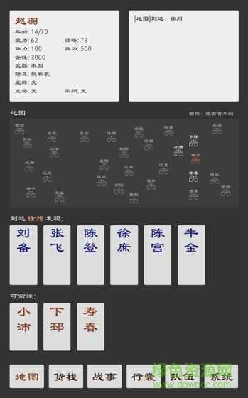 对了,有精铁剑,精致布衣(及以上)就可以全图逛了,打不足为虑(emmmmm,可能会被阴)和不堪一击,屯够10w金币就回东吴招鲁迅(600战力)和凌统(680战力)吧,有了这两位就基本上小无敌了(差不多还剩4-5年官渡吧,继续屯兵)