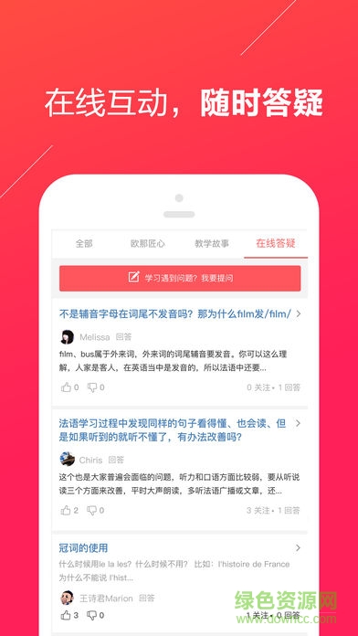 欧那法语app是一款专业的法语学习软件,精选优质课程,从基础法语到各种高阶段性法语学习内容全部覆盖,课程讲解清晰了然,帮助用户快速学习法语,欢迎来绿色资源网下载!