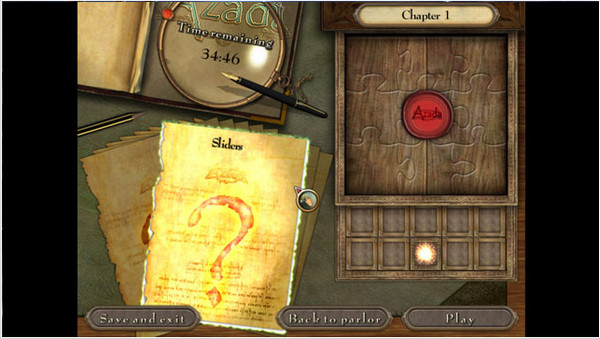 阿扎达的设计类似《神秘视线》系列里的过关迷题,需要在画面中找到一些物品,来打开另一些物品或装置,最终获得线索,游戏还穿插了各种解迷小游戏,有拼图、找蝴蝶、火柴棍迷题,还有经典的河内塔、数独、单身贵族棋等。 游戏背景发生在一本被诅咒魔法书里,里面封印着提多,您必须解决阿扎达一系列的迷题,寻找隐藏的线索,才能释放他。