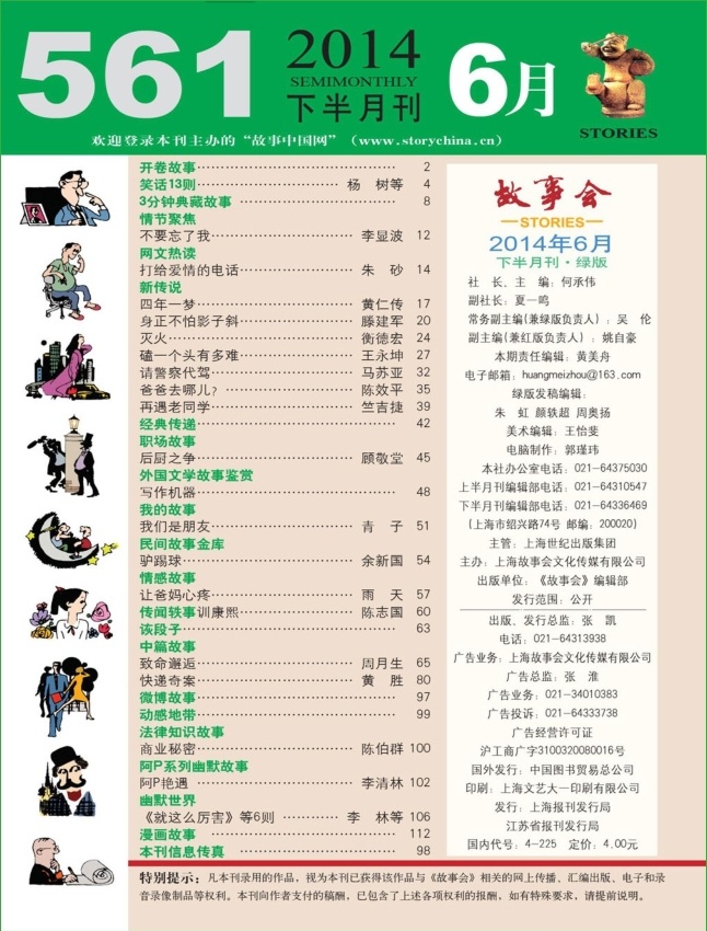故事会2014年6月下pdf高清版,炎炎夏日故事会陪您度过,在每个有趣的故事里享受。这里有很多精彩的故事会内容,可以在无聊的适合轻松阅读,打发无聊时间很不错的哟!