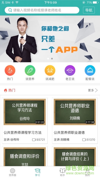 苹果版营养师学院是一款供营养师使用的健康服务手机app,这里有丰富的营养搭配视频课程,可以查看最新的健康资讯,还可以查看每一份食物的组成成分、摄取的食物卡路里情况等,欢迎大家到绿色资源网下载使用!