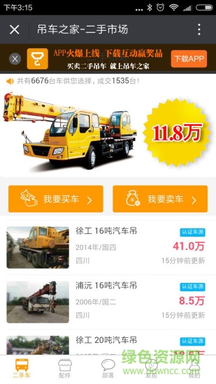吊车之家是一款专为吊车行业打造的二手车交易市场,最新吊车行业动态资讯信息实时阅读,二手车评估交易买卖线下交易更便捷。快来绿色资源网下载体验吧!