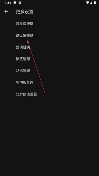 2、在更多设置页面,点击键盘快捷键选项。