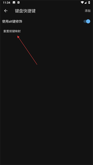 3、进入键盘快捷键页面后,点击重置按键映射。