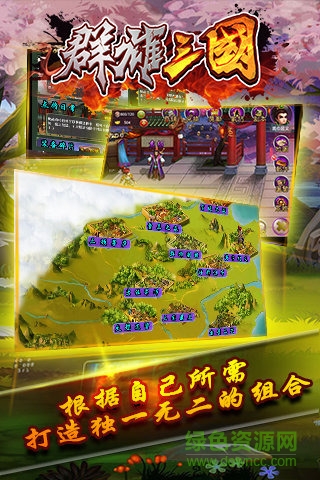 群雄三国手游是一款非常好玩的三国策略手游,游戏中汇集了众多武将英雄,玩家可以组织兵种展开乱斗,特效华丽炫酷,欢迎喜爱的朋友到绿色资源网下载体验!