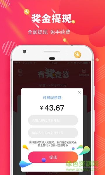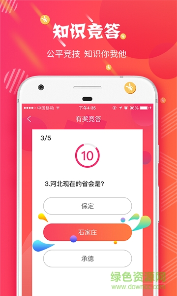 有奖竞答app是一款可以赢现金的手机答题app,汇集超多生活常识,直播参与竞赛答题,新模式新玩法,心动不如行动,欢迎到绿色资源网下载体验!