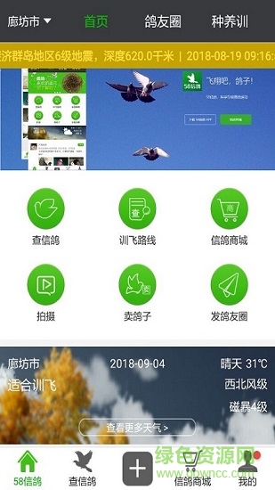 1、地震实时提醒、分钟级天气、训飞路线查询,保证信鸽训飞的安全顺利;