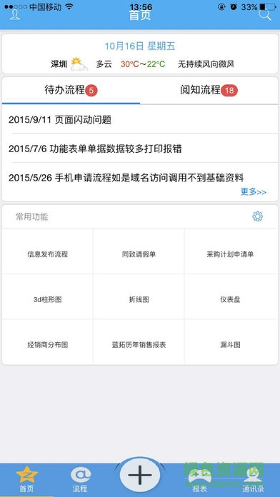 具备流程平台处理中心,行政管理事务中心,CRM客户管理中心及报表分析中心,涵盖企业管理最为重要的移动应用。