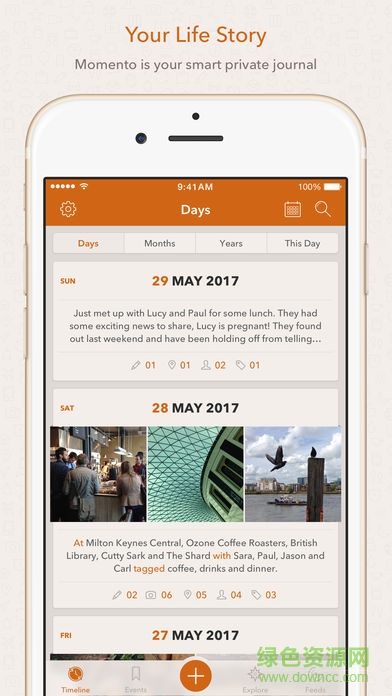 智能私人日记/日志应用程序,可以帮助您捕获和收集回忆,搜索,探索,重温和分享你的生活故事。Momento不仅可以帮助你私下捕捉瞬间在几个水龙头(与笔记,照片,视频,人,地方和标签),但它也会自动收集你的日常活动,帖子和照片从社交网络,应用程序和设备,你每天使用!每一个时刻都是自动组织和制作成一个美丽的私人日记,记载你的生活故事,并保持最新的毫不费力。记住和重温每一个有意义的时刻与Momento。