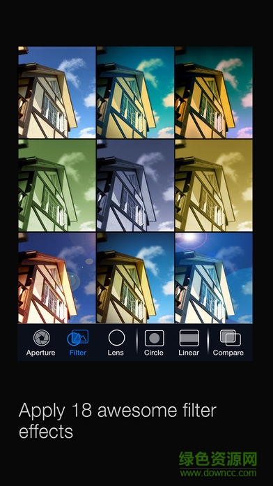 Big Lens收录了超过20种最实用的滤镜效果,包含Lomo、冷暖色调、光影、投射灯、黑白系、红蓝绿色调等,让您能快速创造出风情万种的照片特效。