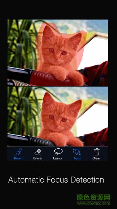 您可以轻松地使用指尖定义清晰的范围,也可以直接套用预设的对焦区域设定、套索工具(lasso tool ) ,或是透过进阶编辑选项,以手动定义焦距区域,而自动焦距控制功能将会立即自动化调整选取区域,让范围更加精准。