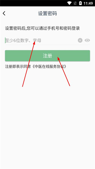 3、进入设置密码页面,设置密码,点击注册完成注册。