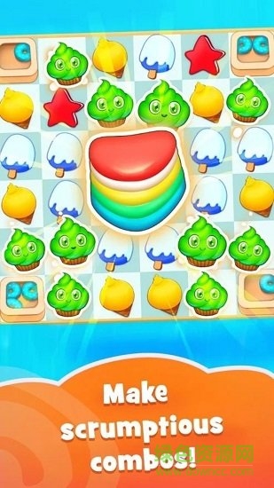 我们上瘾的游戏MATCH3连接美味的冰淇淋,蛋糕弹出,比赛3级愉快的人物!