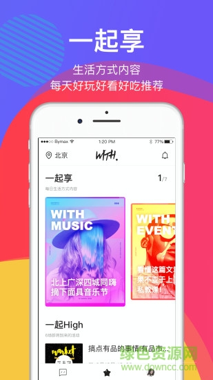 优家with是一款专属于年轻人的潮流社交app,线上线下全面打通,可以在一起单聊、群聊,也可以一起找活动high起来,给你一个创意的居住空间,欢迎喜爱的朋友到绿色资源网下载使用!
