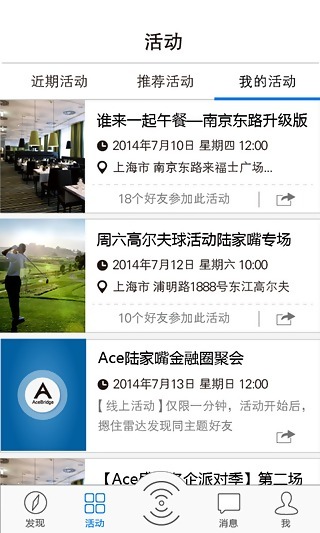 AceBridge的活动平台可以让每一位会员都能体验组织和参与丰富多彩活动的乐趣。活动平台功能集发布、分享及互动于一体,让你时刻了解并分享正在发生的各类讲座沙龙与社交派对活动,也及时了解朋友们的活动状态。