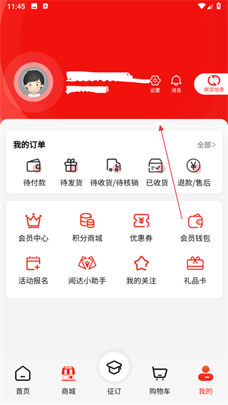 1、打开阅达教育APP,进入个人页面后点击设置图标,进入设置页面。