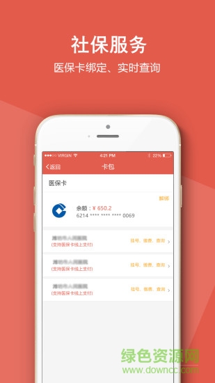 2、绑定实体医保卡,支付、查询、在线缴费;