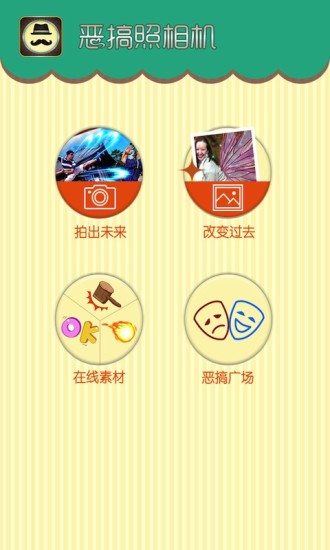 恶搞照相机是一款非常有趣的手机相机应用,恶搞相机强力登陆安卓平台。你可以用它给你/你的小伙伴们拍照,并且加上各种有趣的场景,通缉令、结婚证、大猩猩,素材还会不断的更新!恶搞完成后,还可以分享到微博,与朋友们共享恶搞的乐趣。快加入恶搞的行列中来吧。