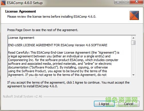 1、在绿色资源网下载esacomp安装包,打开ESAComp4.6.0.040-altair-setup_downcc.exe进入安装界面
