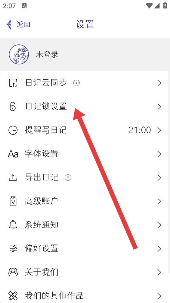 2、在设置页面中,找到并点击日记锁设置选项。