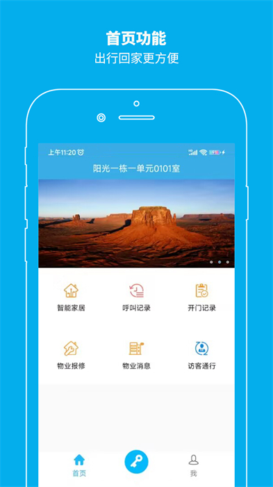 2.一键开锁功能,当业主进门时,可以选择app首页的“一键开门”,选择需要开户的门,点击莫急小钥匙图标即可开门。