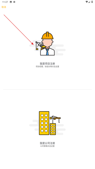2、进入到该页面内,选择并点击项目注册的按钮。