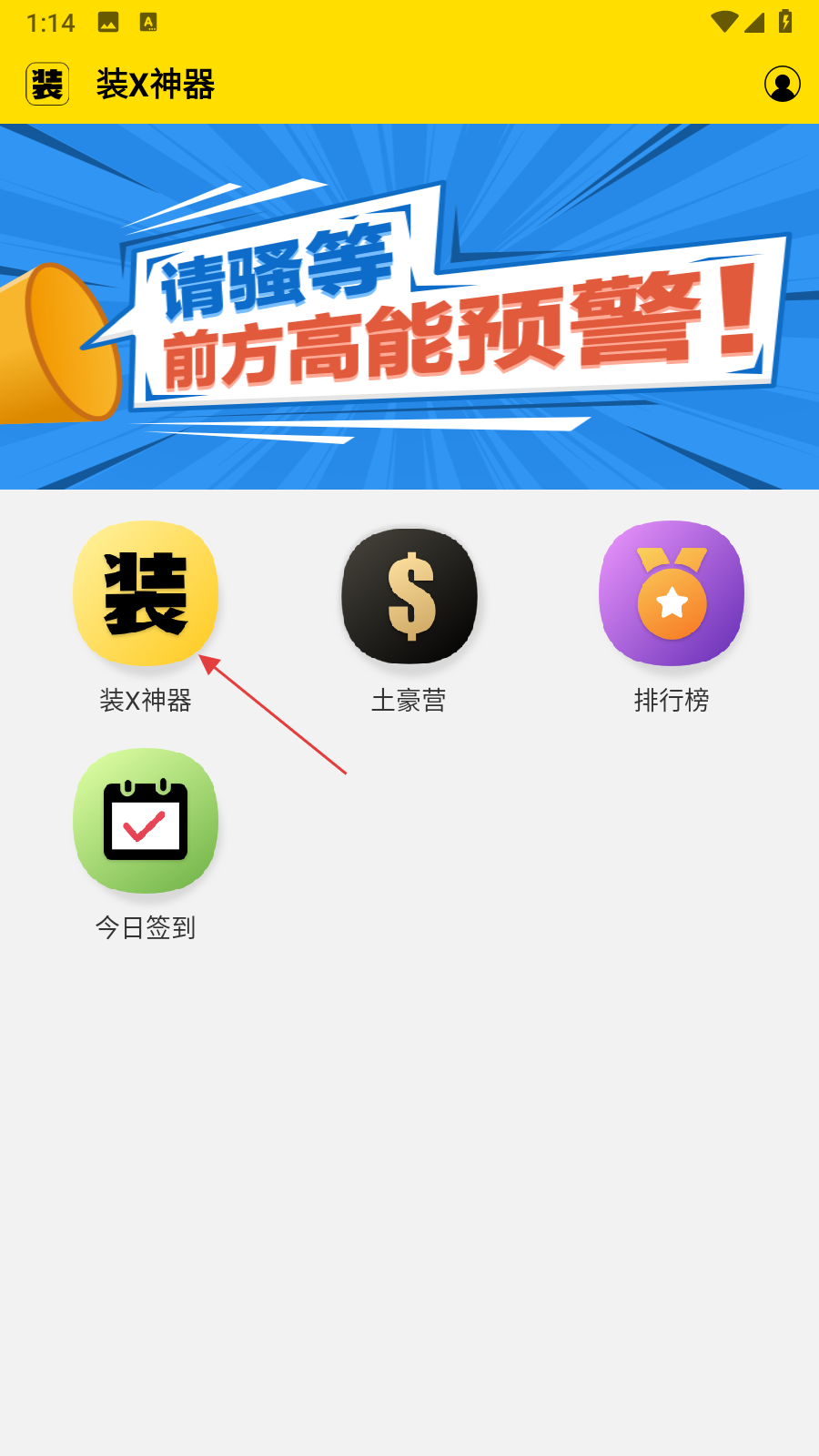 1、打开装B神器APP,进入主界面,点击装X神器。