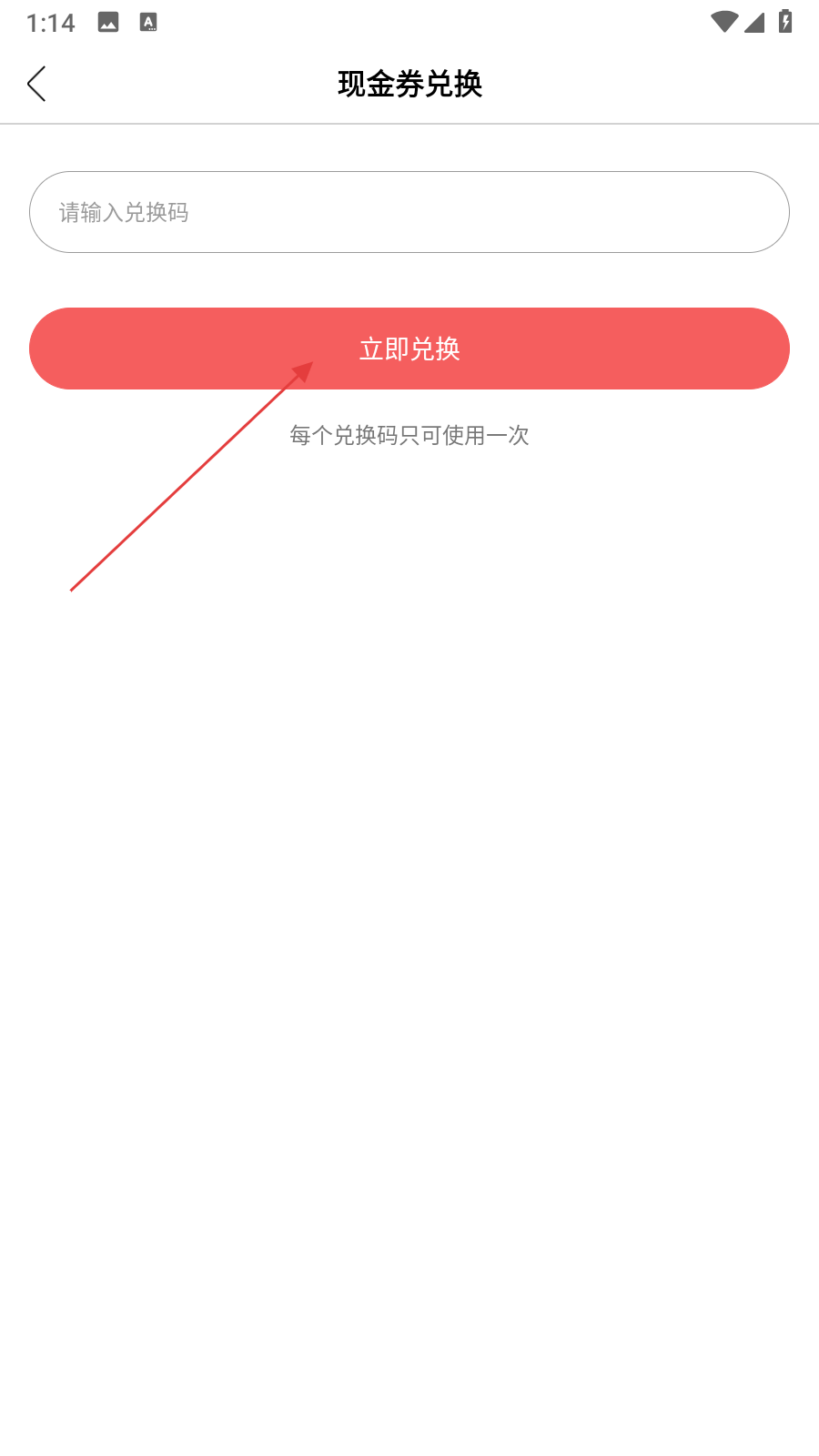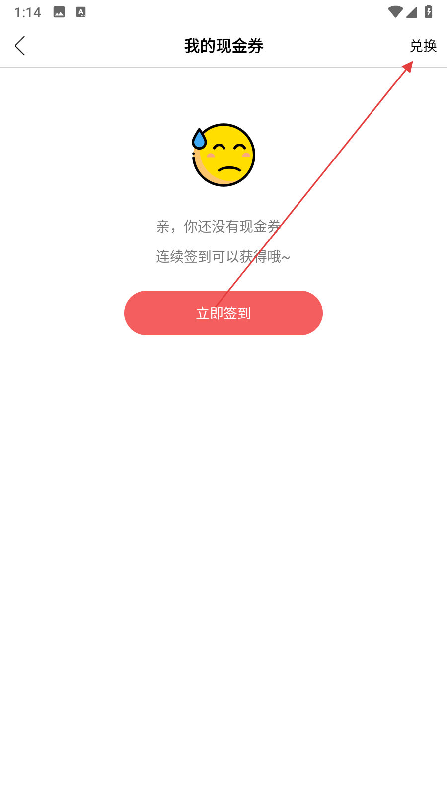 3、在我的现金券页面中,点击右上角的兑换按钮,进入现金券兑换界面。