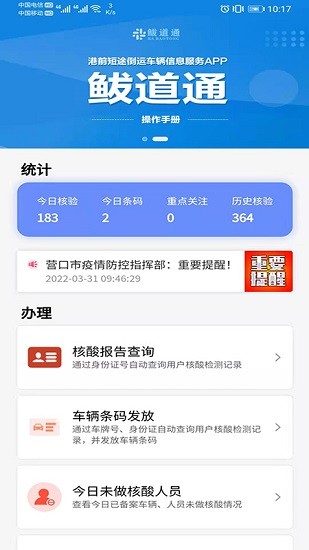 港通营运是鲅鱼圈政府为抗击疫情打造的一款港前短途倒运车辆信息服务APP。